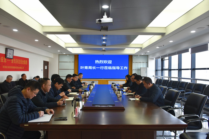為深入了解民爆行業運行狀況,精準指導企業安全生產經營工作,2月10日,河南省委軍民融合辦民爆局葉青局長一行蒞臨公司調研指導。公司董事長劉嵩、總經理靳義國及班子成員參加會議。